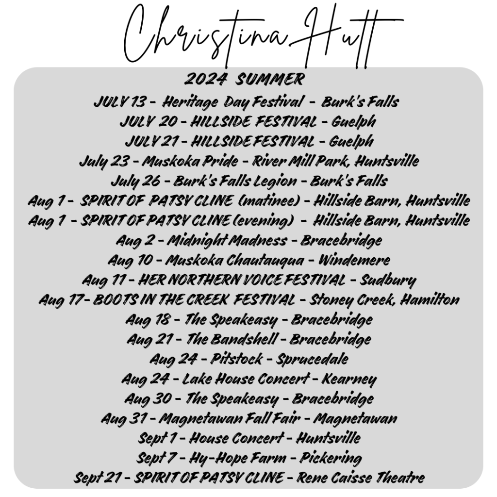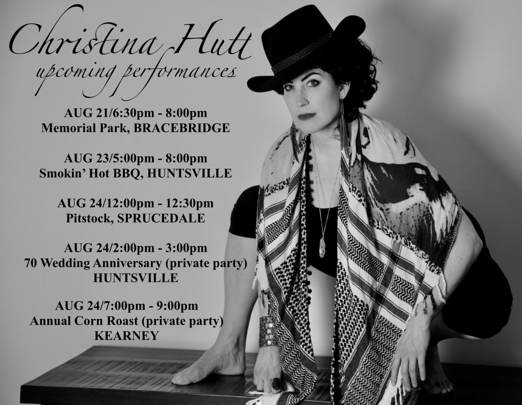 In the past several years Christina has performed on the VIA RAIL coast to coast train across Canada; released an EP; recorded backup vocals for Kerrville Folk Award winner Jon Brooks; and performed with Juno Award winner Blues artist Paul Reddick. Hutt has also worked with and been mentored by Juno award winner Blues singer, Rita Chiarelli, and one of Canada’s finest folk artists, Katherine Wheatley. Christina has opened for Canadian Country singers, Tim Hicks and Tyler Joe Miller as well as Juno Award winner Blues artist Paul James and Canadian Folk Singer Craig Cardiff.